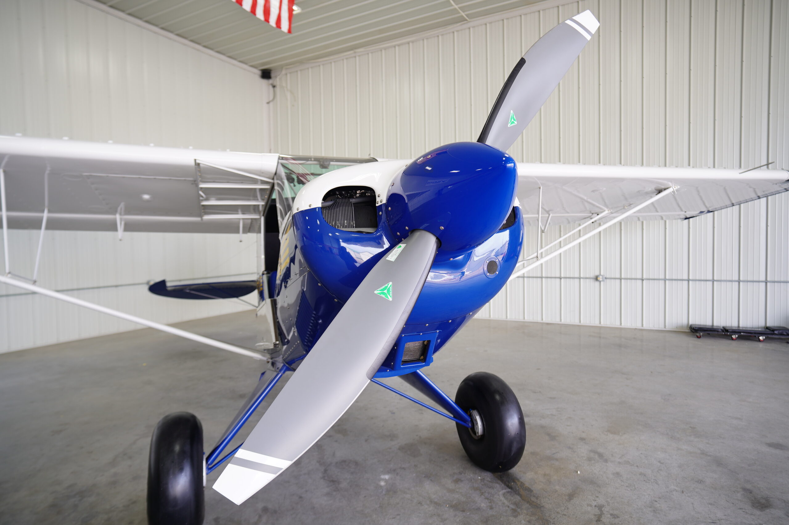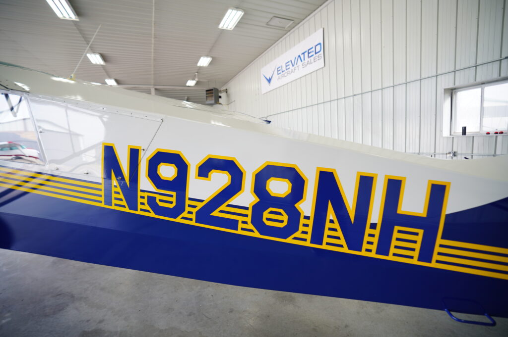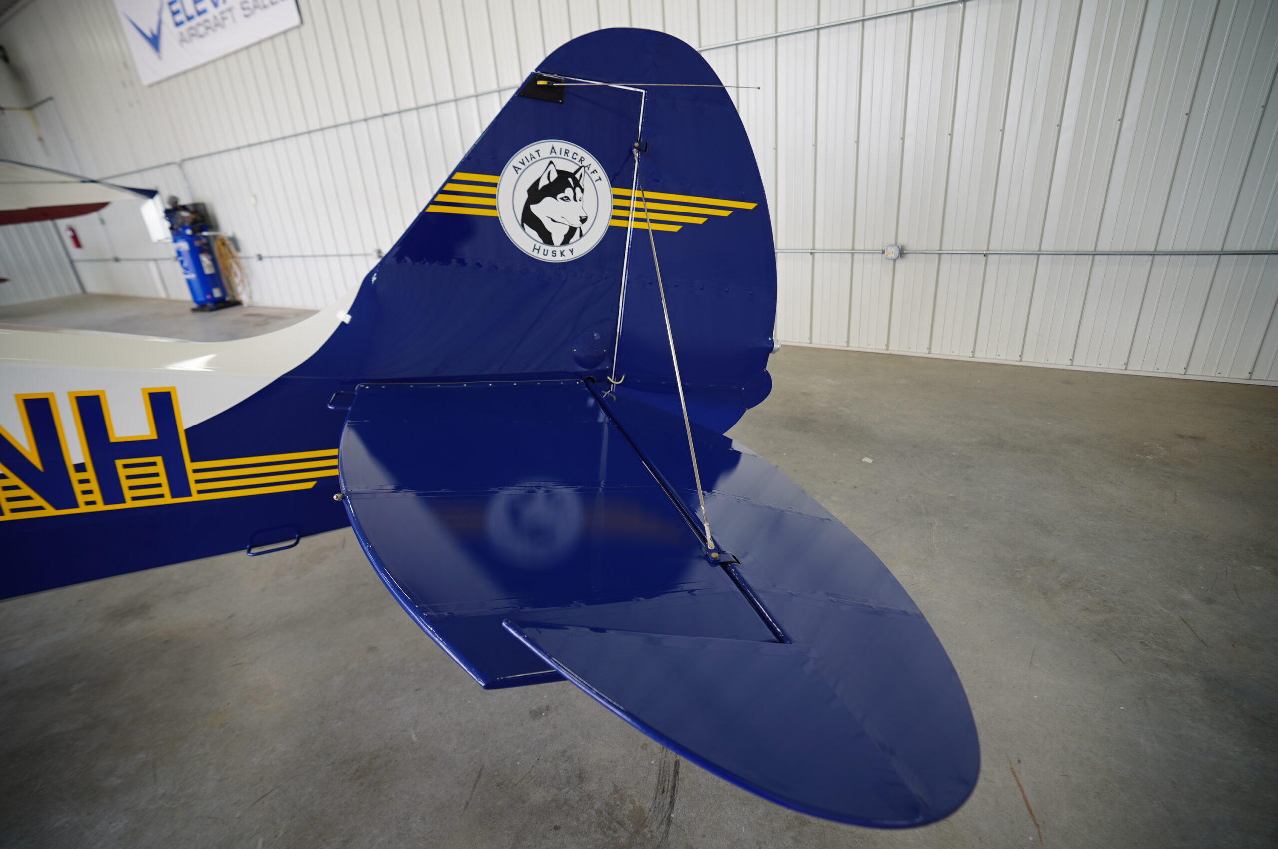 Paint: Aviat Scheme: Overall White w/ Husky Blue & Yellow striping, painted to match Blue spinner. Fabric is nearly perfect, no patches, no ring worm, no fading, high gloss/shine, always hangared.