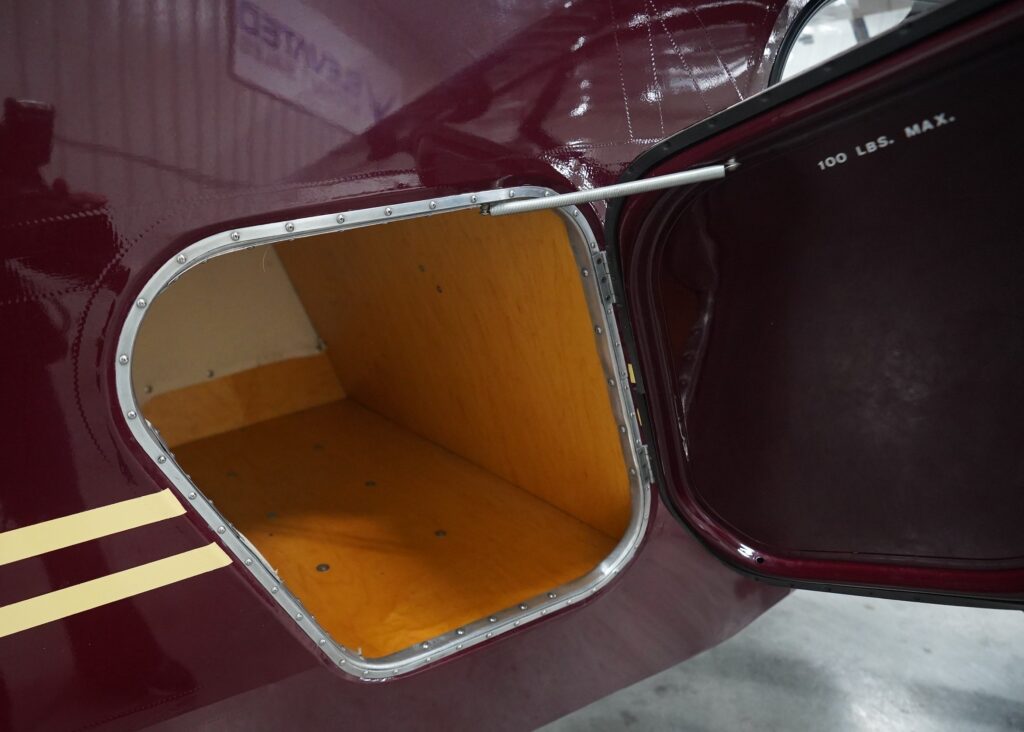Paint: 11/10, completed post rebuild in 1999 by Butch Walsh, overall Boston Maroon with Diana cream striping, paint shines to a reflection, also good for a mirror. Restored to original 1948 vintage quality, fabric rated 10/10, no blemishes. Always hangared, operated exclusively in WI since rebuild.