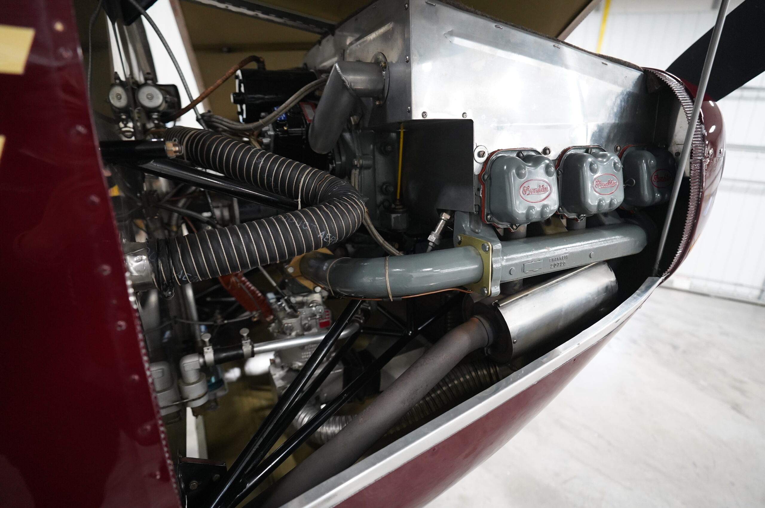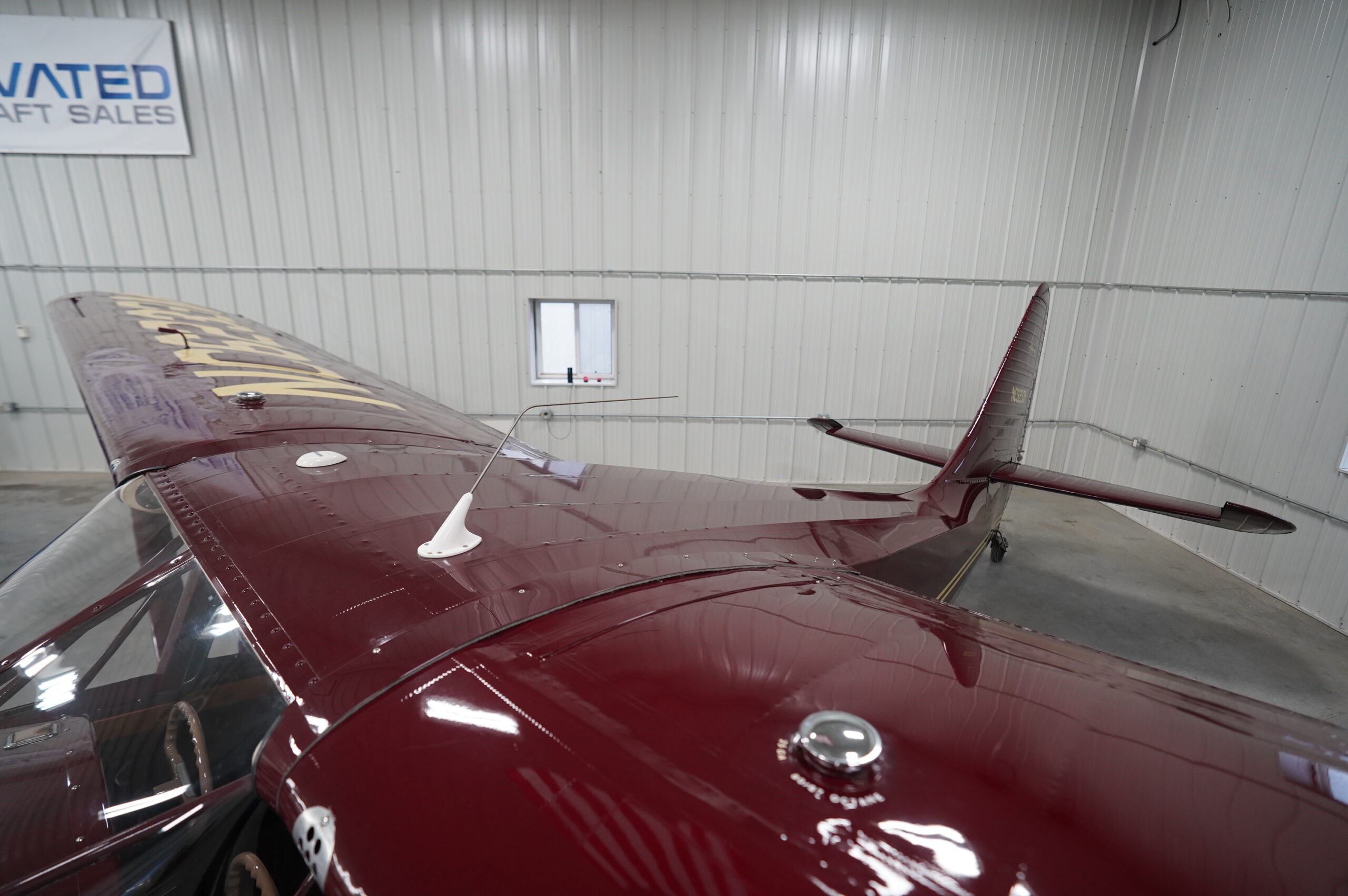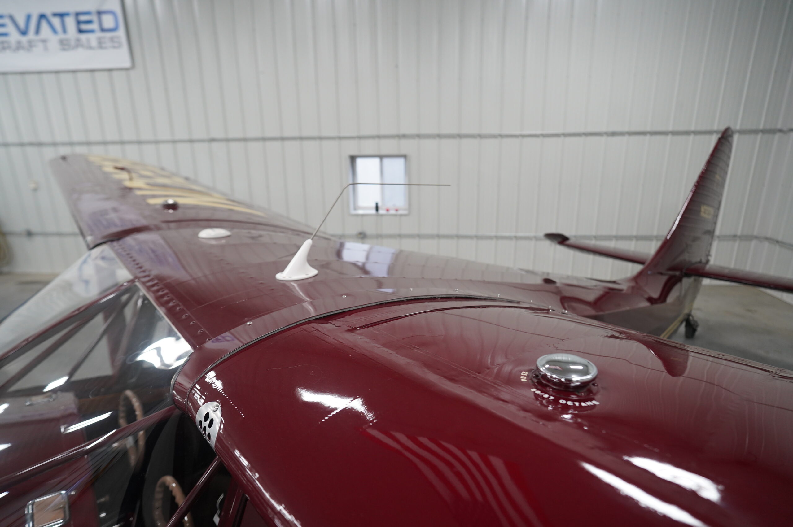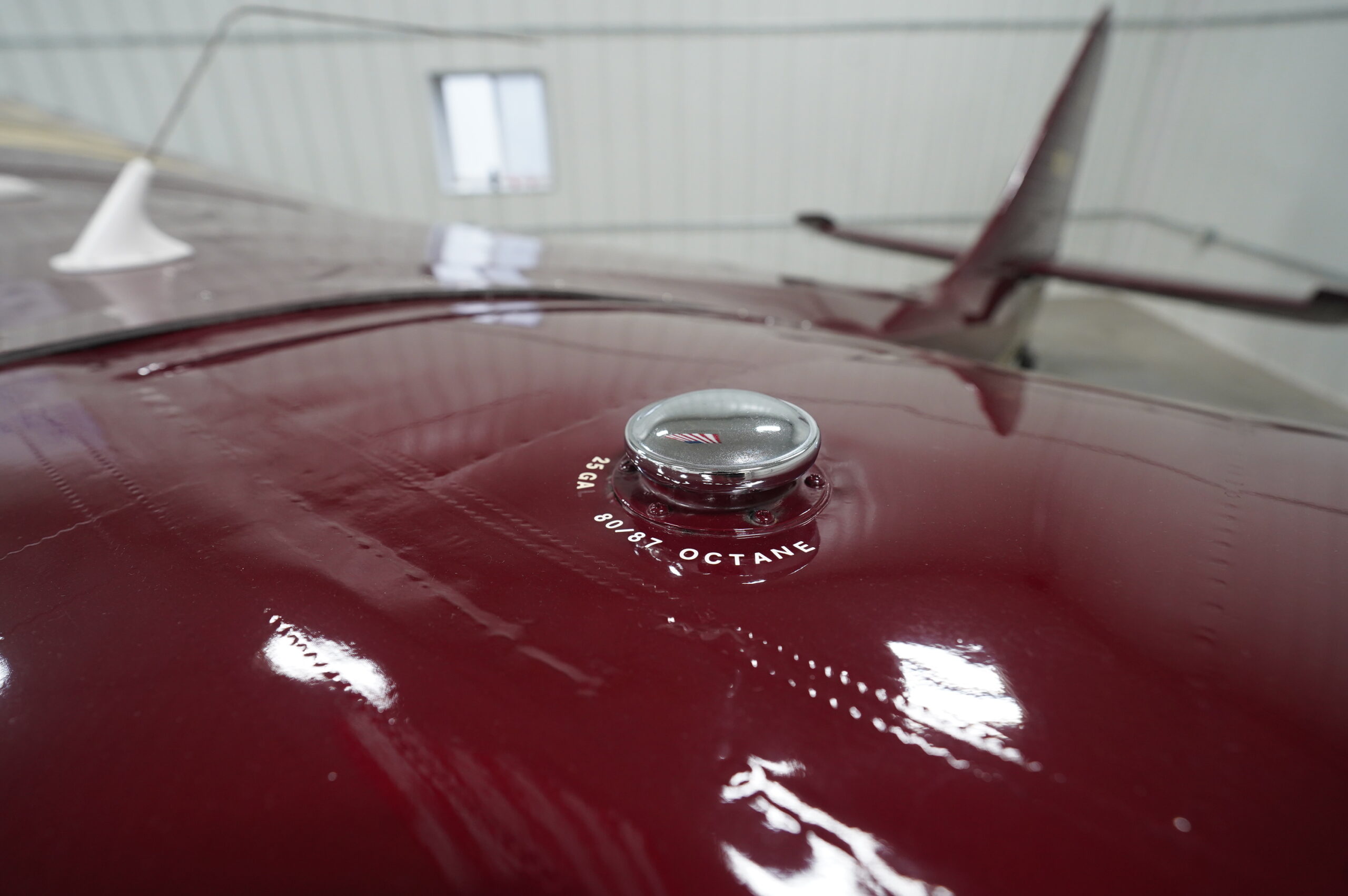 Paint: 11/10, completed post rebuild in 1999 by Butch Walsh, overall Boston Maroon with Diana cream striping, paint shines to a reflection, also good for a mirror. Restored to original 1948 vintage quality, fabric rated 10/10, no blemishes. Always hangared, operated exclusively in WI since rebuild.